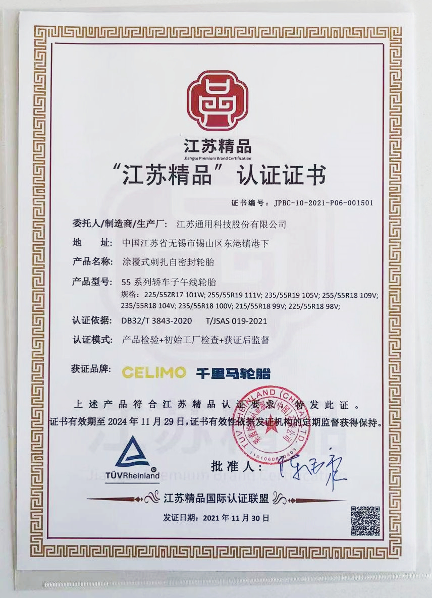 近日,通用股份旗下千里馬品牌涂覆式刺扎自密封輪胎,榮獲 江蘇精品認(rèn)證。通用股份也是本次全省唯一榮獲江蘇精品認(rèn)證的輪胎企業(yè)。
