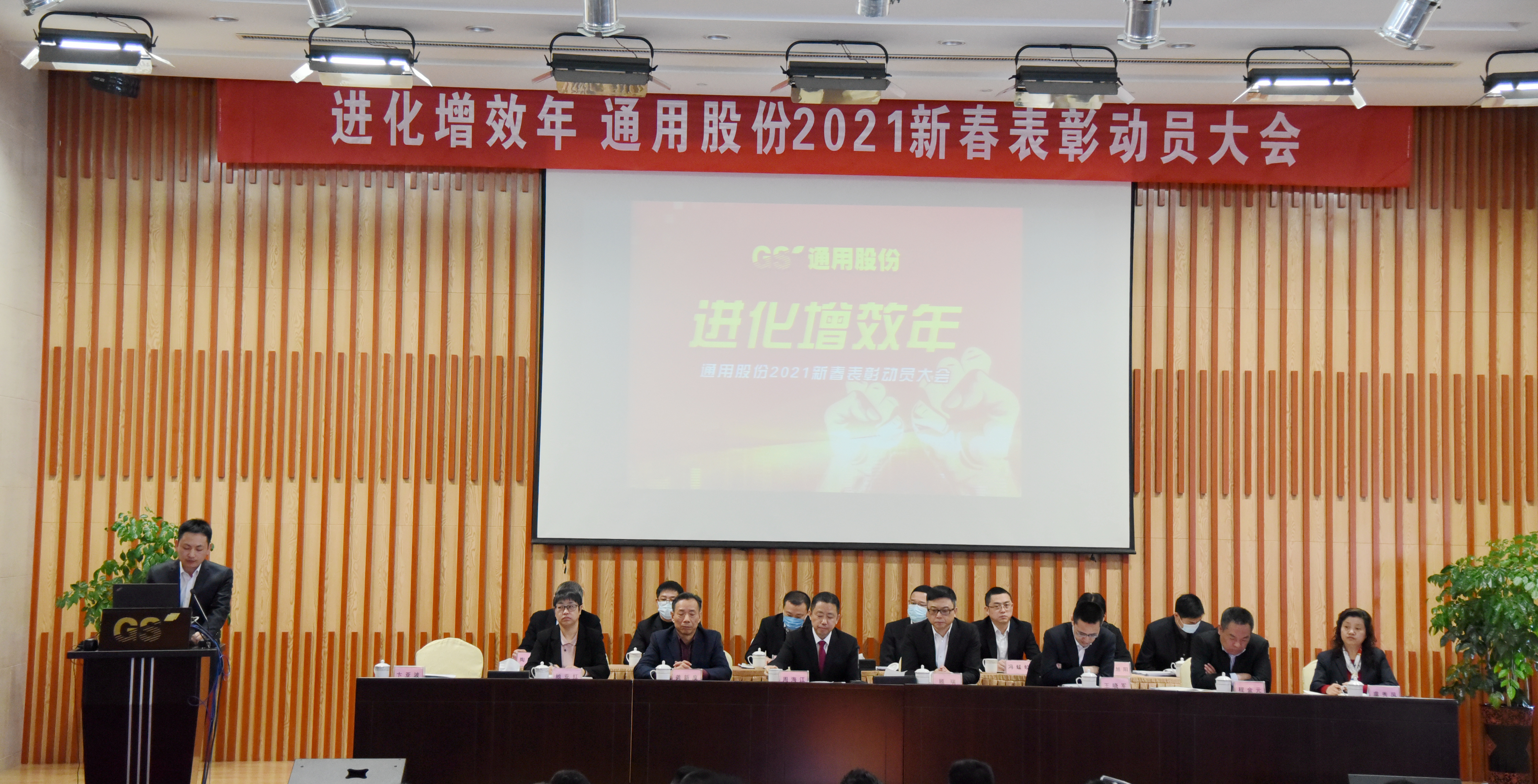 2月20日,通用股份隆重召開進(jìn)化增效年2021新春表彰動員大會,深入總結(jié)了2020年的工作成果,同時對2021年各項工作進(jìn)行了動員和部署。紅