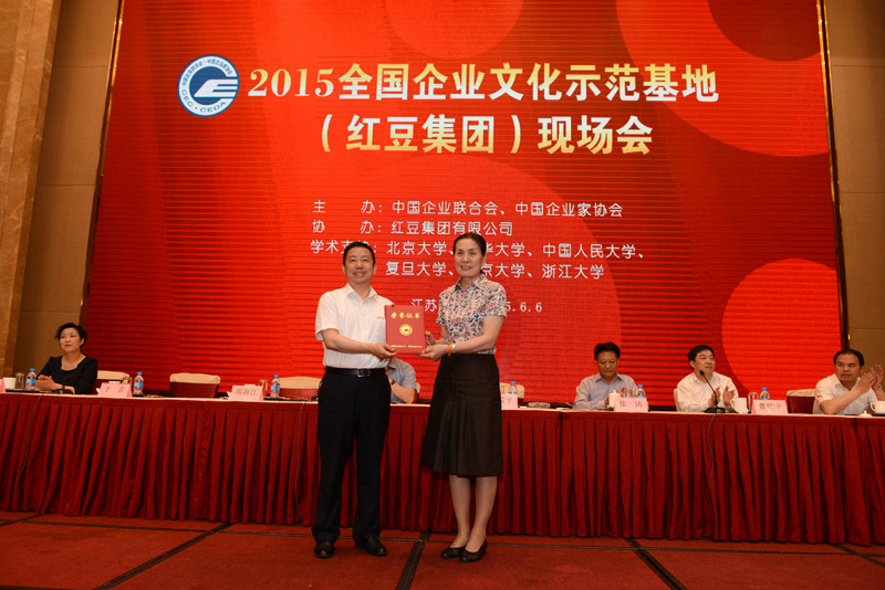 6月6日,在無錫市紅豆杉莊舉辦的2015全國企業(yè)文化示范基地(紅豆集團)現場會上,紅豆集團被中國企業(yè)聯合會、中國企業(yè)家協會授予“全國企業(yè)