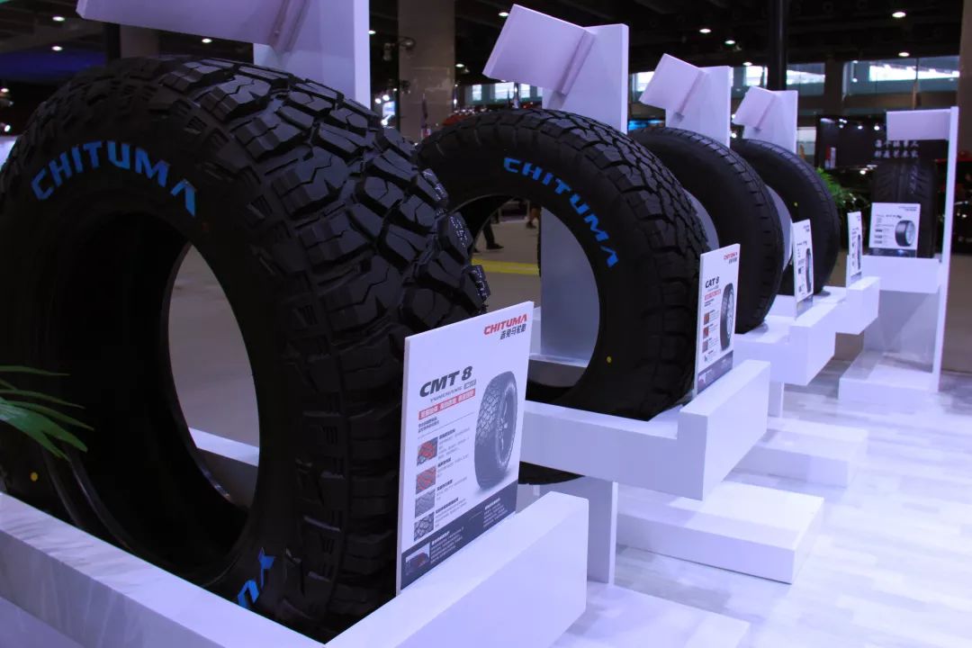 此次展會,通用股份展臺設計以標志性品牌顏色——藍色為主題調,深藍、淺藍的搭配使展廳整體色系統一、層次鮮明,凸顯了通用股份科技、創新、未來的產品設計理念。除了差異化的產品展示,一輛裝配了赤兔馬輪胎新品YUNCHANG M/T CMT8的紅色越野車屹立在展臺中央,強烈的視覺沖擊格外引人注目,吸引了觀展人士的廣泛關注。