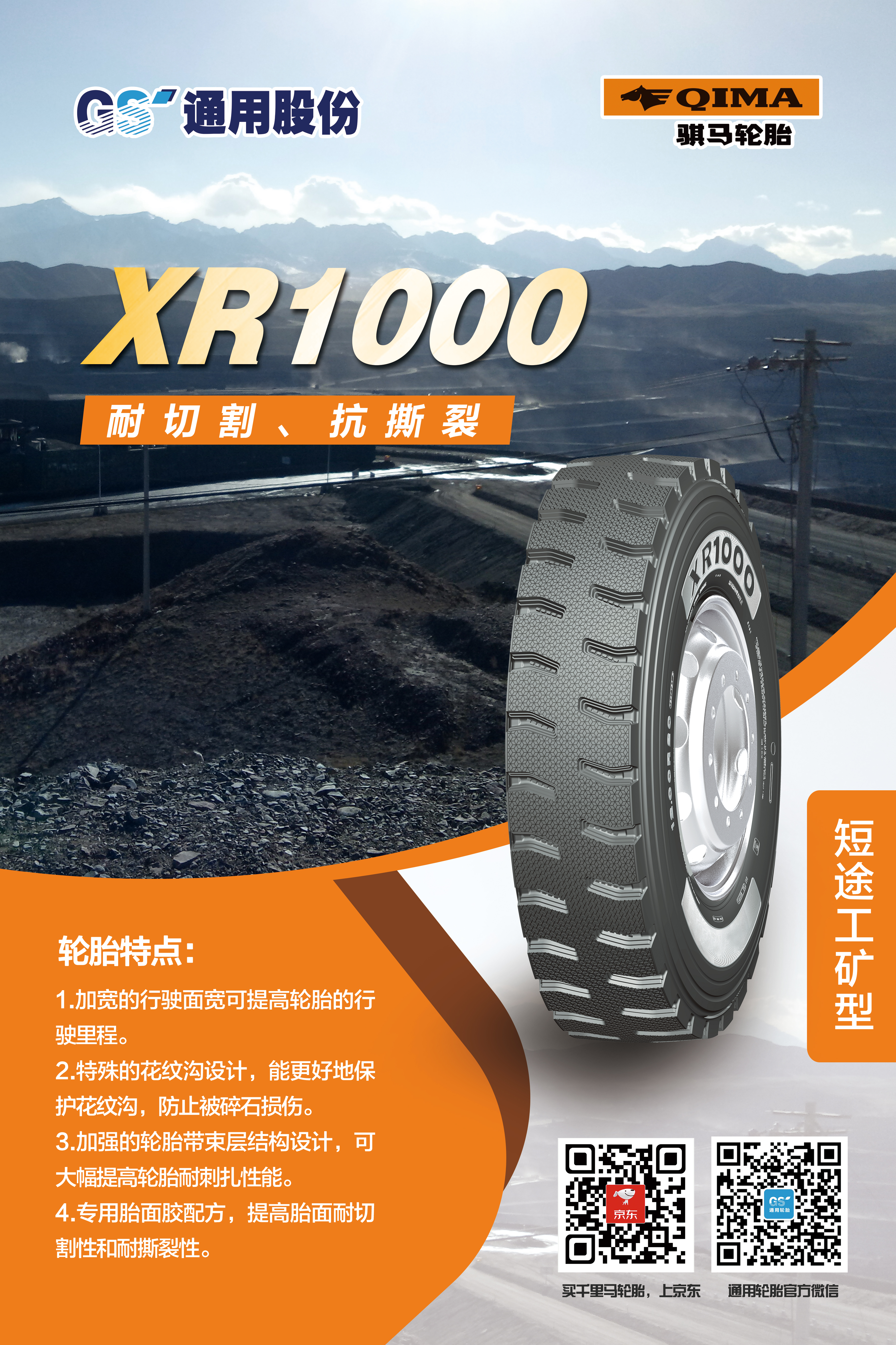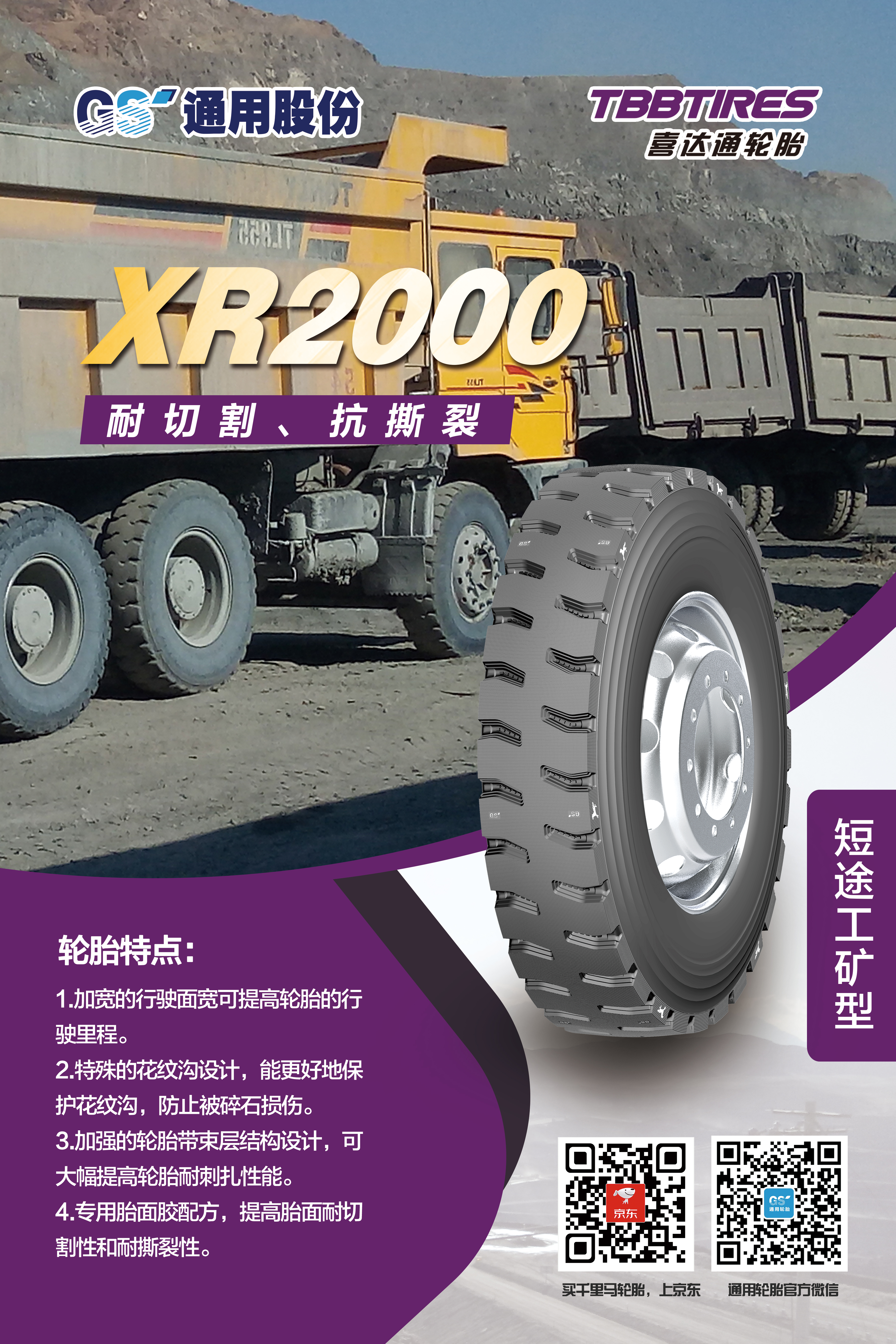 眾所周知,自2007年自主研發的第一代短途礦山胎問世,通用股份在行業率先開創了礦山胎這一品類,充分滿足礦區特殊使用條件和特點,備受中國礦山車司機的喜愛。近年來,通用股份立足國內礦區路況特點,對輪胎花紋、配方、結構等進一步升級,重磅推出礦山胎傳承之作——XR1000、XR2000。