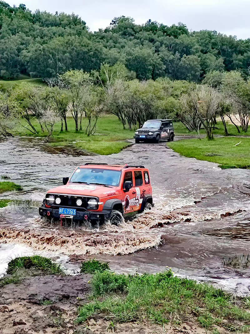 烏蘭布統草原地形復雜多樣,水洼、沼澤、碎石路等對輪胎性能提出了嚴苛考驗。赤兔馬CAT8+輪胎憑借獨特的曲紋胎側花紋設計,以及優異的排水、排泥、防夾石性能,從容應對各種挑戰,為行程保駕護航。