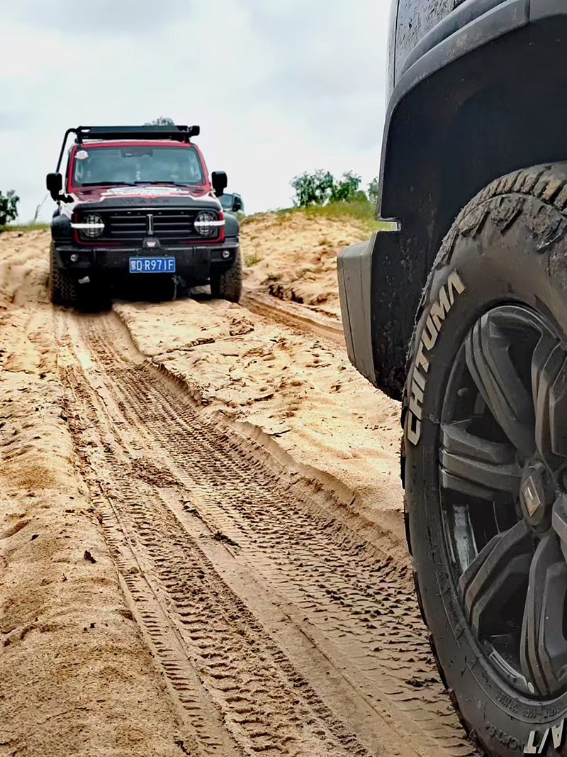 在玉龍沙湖,高達70-100米的沙丘成為了檢驗輪胎性能的“試金石”。赤兔馬CAT8+輪胎采用高耐磨橡膠配方和胎肩立體防護設計,帶來超強抓地力和自潔性能,即使面對陡坡沖沙也游刃有余,讓駕駛者盡享越野樂趣。