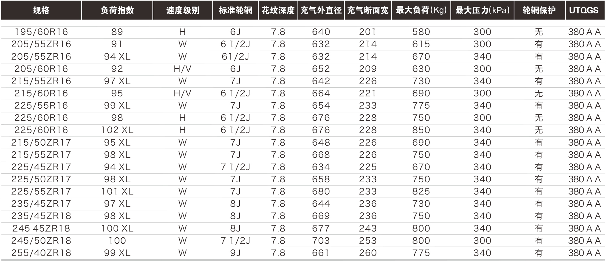 胎面非對稱的花紋設計,既確保了優異的彎道抓著力又分散了轉向時產生的接地壓力。