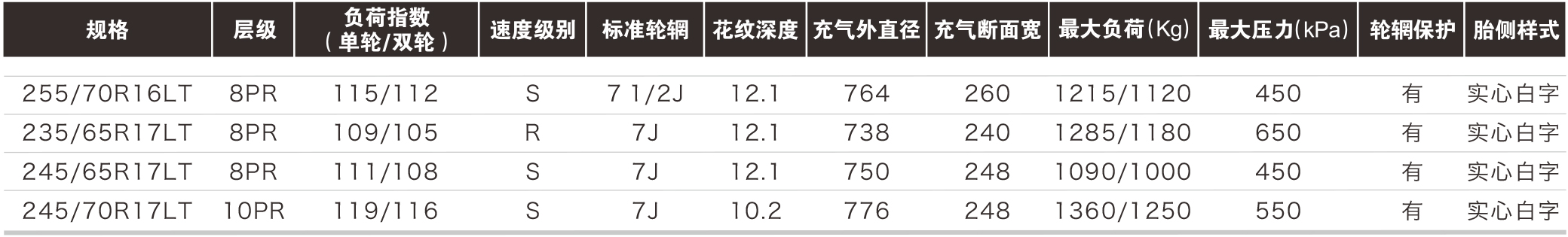 采用高耐磨橡膠和填充增強體系有效抵御惡劣路況行駛中的外部損傷,同時還能提高車輛泥地和沙地行駛的牽引性能。