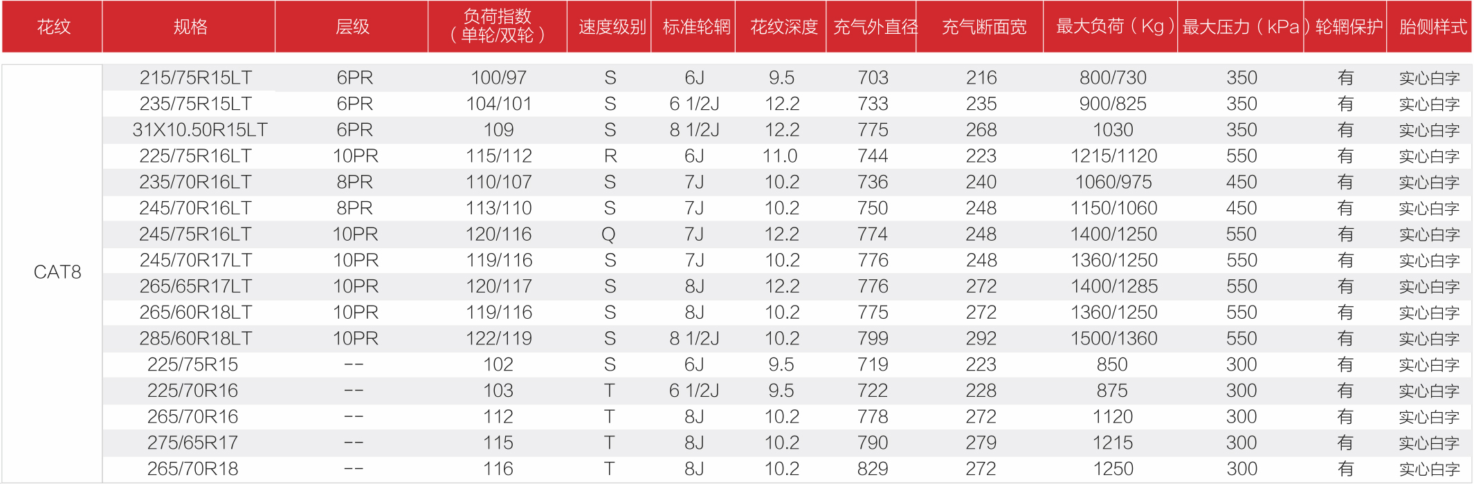 GUANYU A/T CAT8擁有曲折花紋溝設(shè)計(jì),適應(yīng)各種惡劣路況。連貫的橫向傾斜溝槽在濕地路面有效排除積水,提供持續(xù)穩(wěn)定的抓地能力。全新耐磨配方,適合比較苛刻的路面,保證了輪胎壽命。